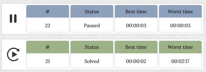 paused one (blue) or solved one (green). Start by pressing the "start" icon.