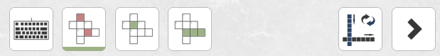Gameplay windows will open. At the top left you have crossword number [shape x number]. Next to it there is a pause button, which pauses the game.