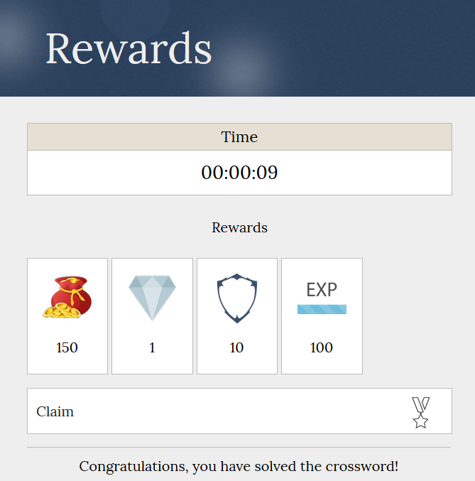 If you have already solved a crossword before, you will not get any rewards, but your best and worst time will